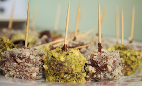I used 3 bananas, and made around 15 little sandwiches. When you finish the rolling with chocolate, continue in the same way, this time using your blended nuts. You can use only one type of nut, it's up to you.